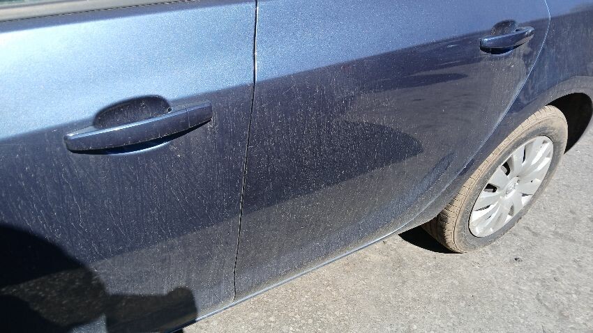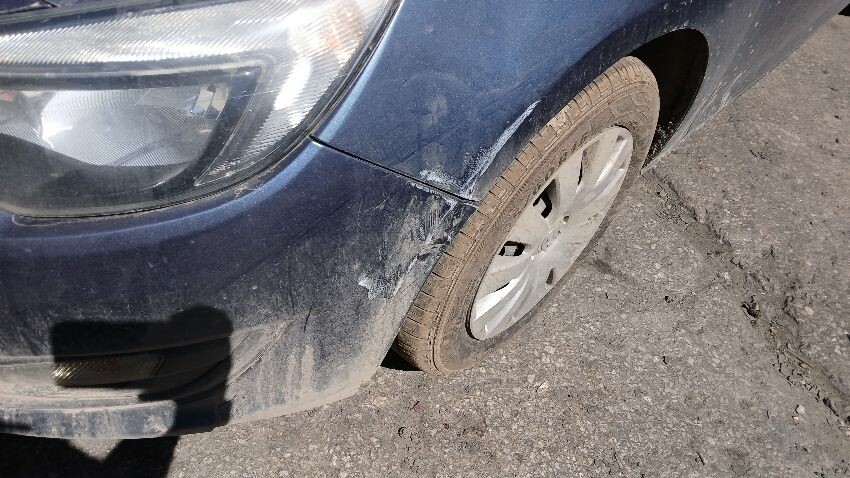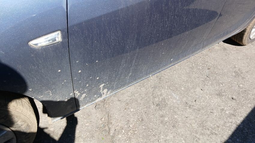 Front bumper, bonnet, n/s front wing, n/s wing mirror, n/s rear door, n/s rear quarter, rear bumper, o/s complete, scuffs and scratches all over, general wear and tear for age and mileage