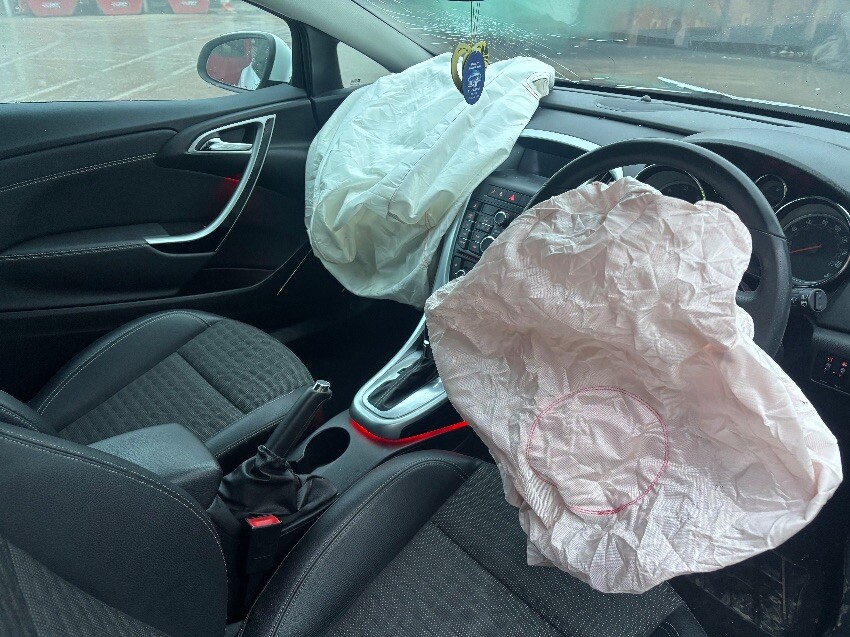 Scratched and marked air bags windscreen smashed