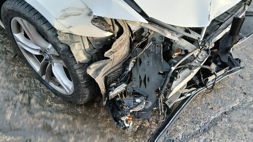 Front bumper, possible engine damage, bonnet, bonnet jammed, ns front wing, rear bumper, os rear light unit, os complete, scuffs and scratches all over, general wear and tear for age