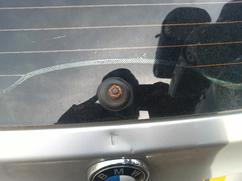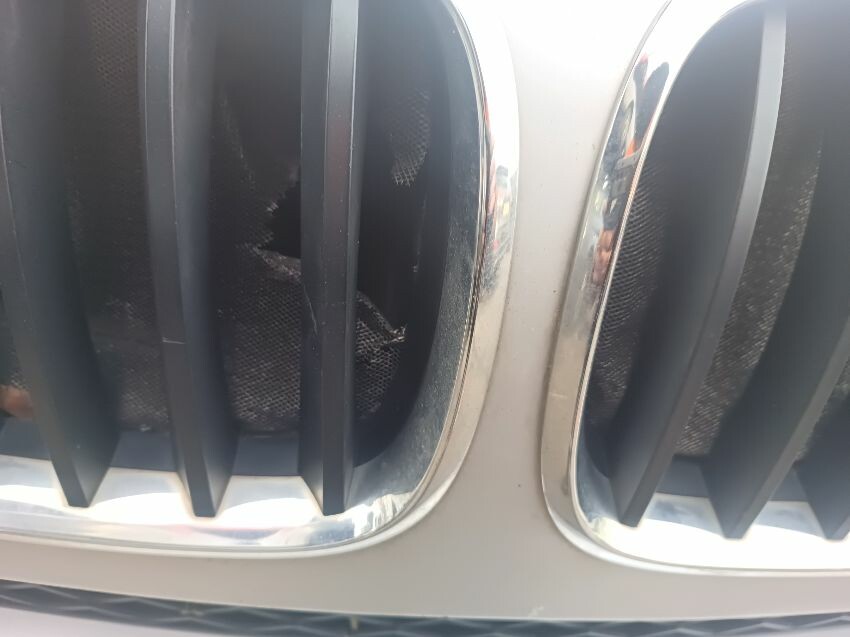 Front bumper damaged, front grill damaged, rear wiper missing, dent in rear hatch, general wear & tear.