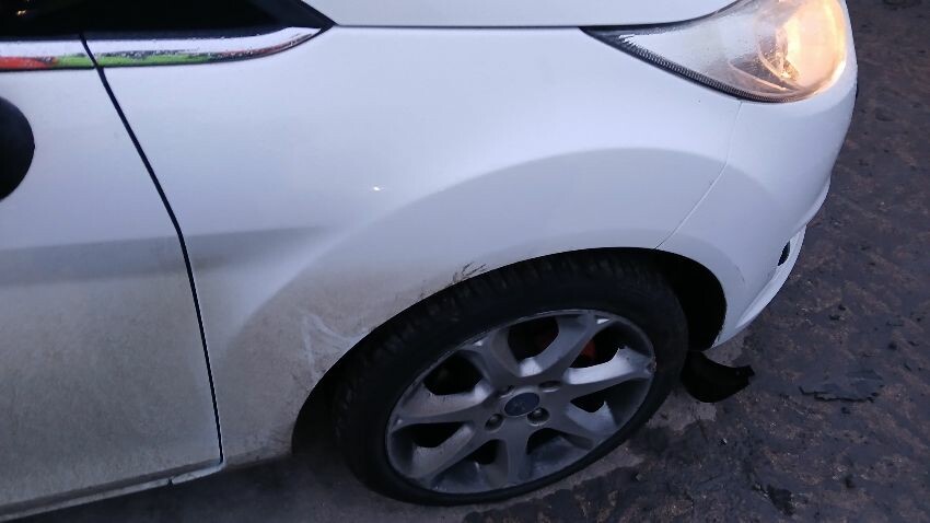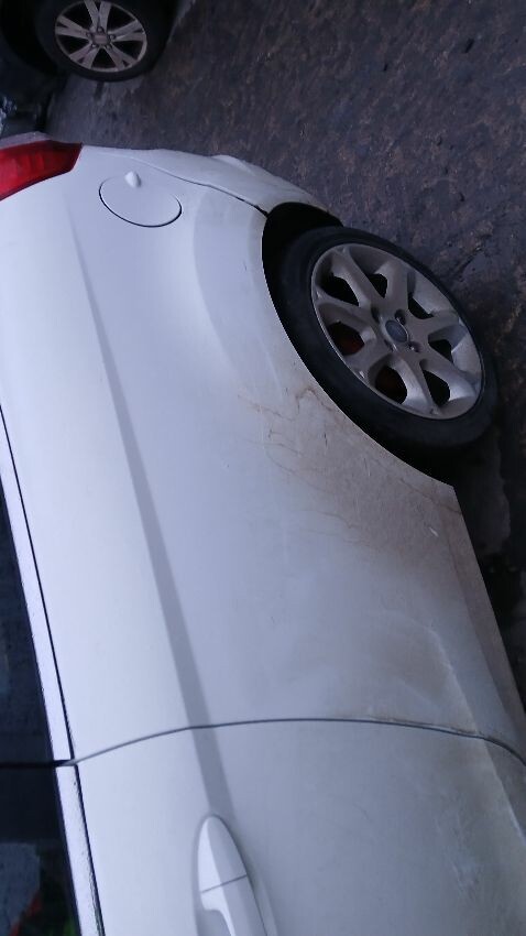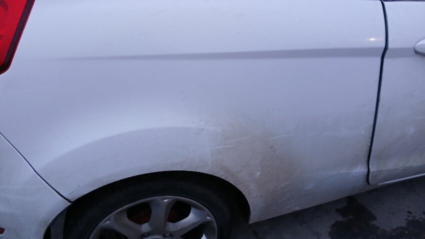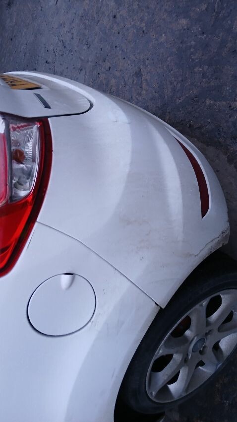 Front bumper, front grill, n/s wing mirror, n/s door, n/s rear quarter, rear bumper, boot lid, o/s rear quarter, o/s door, o/s wing mirror, scuffs and scratches all over, general wear and tear for age and mileage, engine knocking