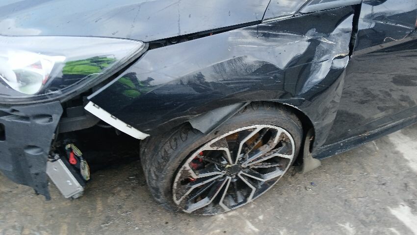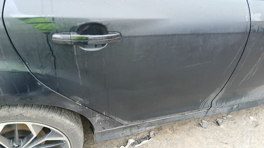 Front bumper missing, ns complete, rear bumper, ns rear light unit, os complete, scuffs and scratches all over, general wear and tear for age, interior soiled and mouldy