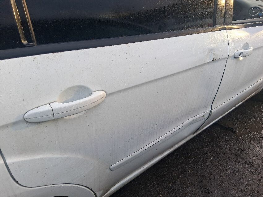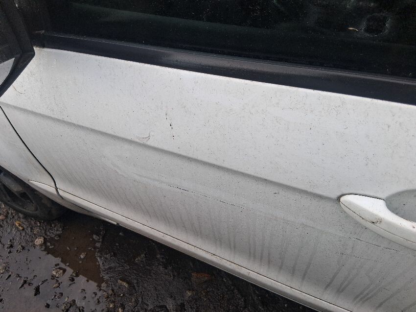 Struggles to start, very low on fuel, rear bumper, bootlid, o/s quarter, o/s doors, o/s mirror, o/s wing, front bumper, bonnet, windscreen, n/s wing, n/s mirror, n/s doors, n/s quarter, n/s rear light, general wear and tear and scratches.