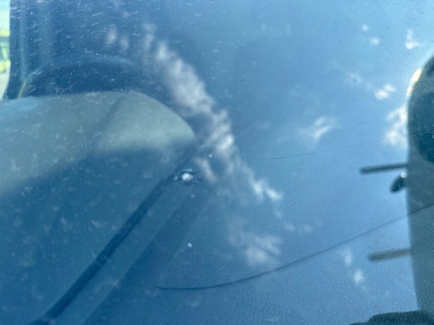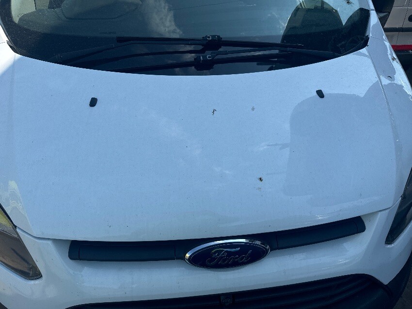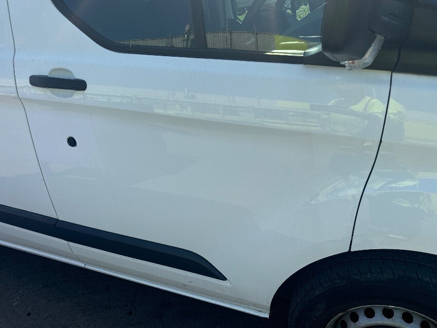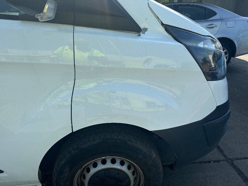 Nearside wing, drivers door, nearside rear quarter, rear bumper, rear doors, offside rear quarter, offside sliding door, passenger door, offside mirror, offside wing, front bumper, bonnet, screen, bonnet lever missing, general wear and tear.