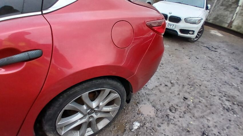 Front bumper, n/s front headlight unit, n/s front wing, n/s wing mirror, n/s rear door, n/s rear quarter, rear bumper, o/s rear quarter, o/s front door, o/s front wing, scuffs and scratches all over, general wear and tear for age, deadlocked