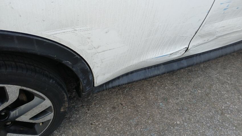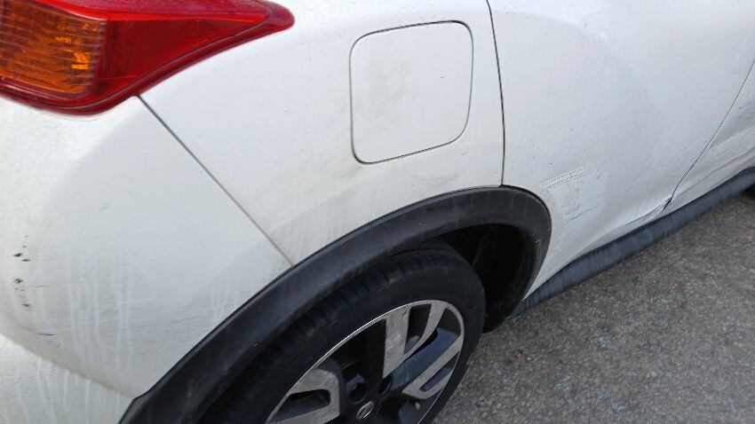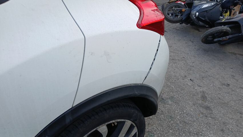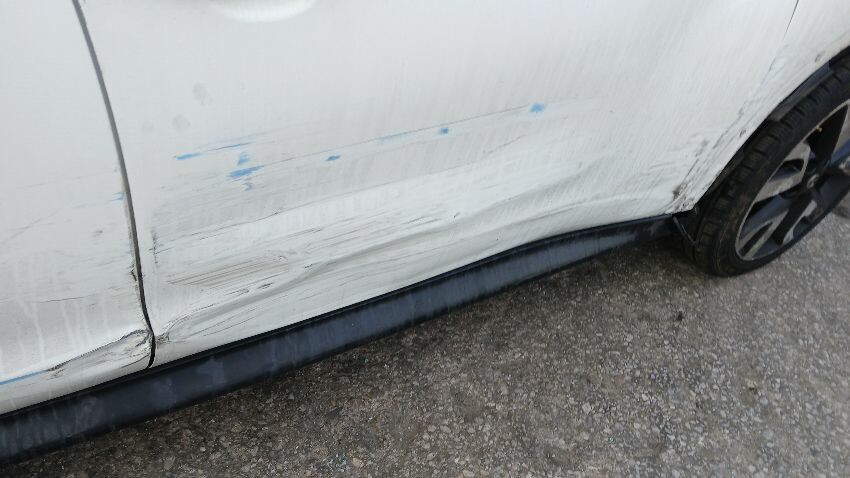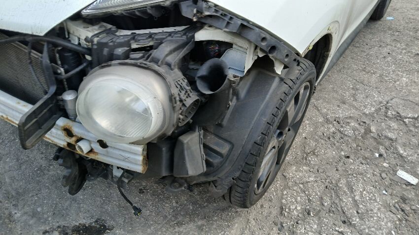Front bumper missing, o/s front light unit missing, bonnet, n/s front wing, n/s front door, n/s rear quarter, rear bumper, boot lid, o/s complete, scuffs and scratches all over, general wear and tear for age