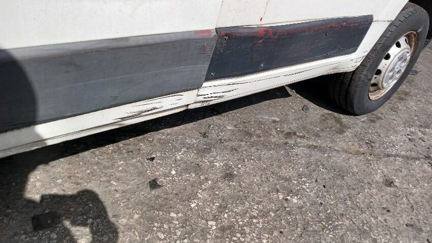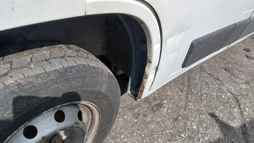 Front bumper, n/s complete, rear bumper, both rear doors, n/s rear light unit, o/s rear quarter, o/s body panels ,o/s front window smashed, o/s wing mirror, scuffs and scratches all over, general wear and tear for age, areas of rust throughout,. bonnet release broken