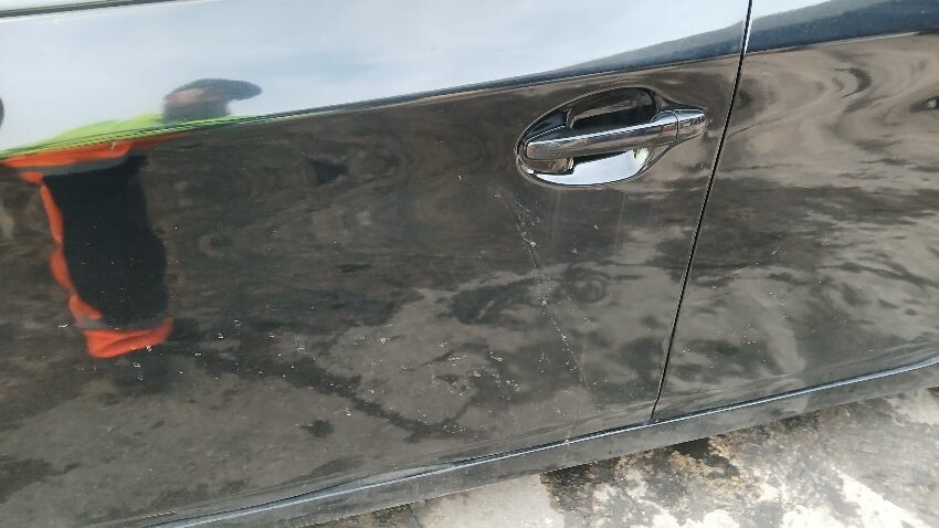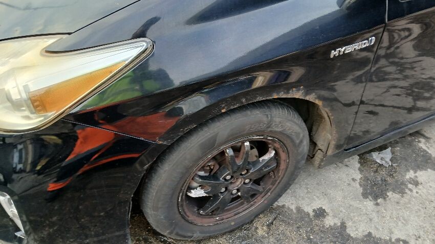 Front bumper, bonnet, ns front wing, ns wing mirror ,ns front door, ns rear quarter, rear bumper, os rear quarter, os wing mirror, os front wing, scuffs and scratches all over, general wear and tear for age, areas of rust throughout, roof, os a pillar