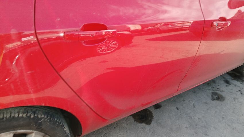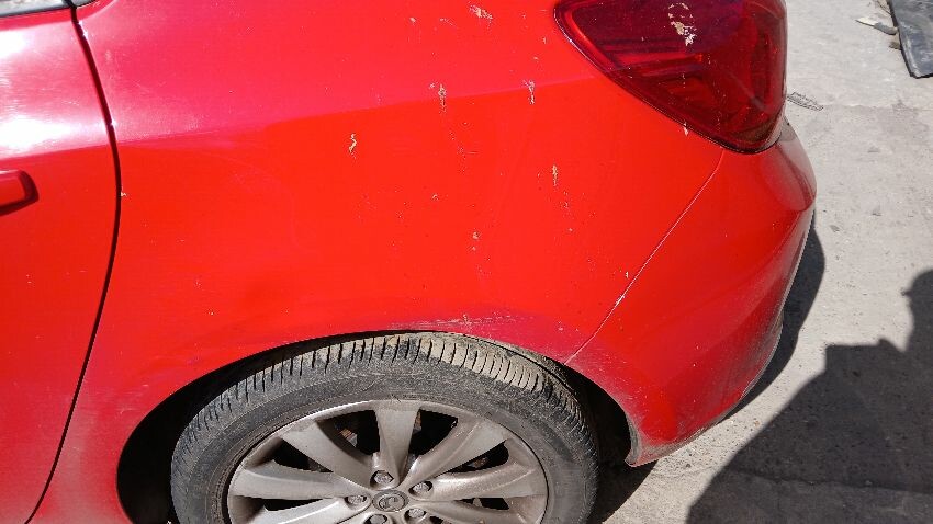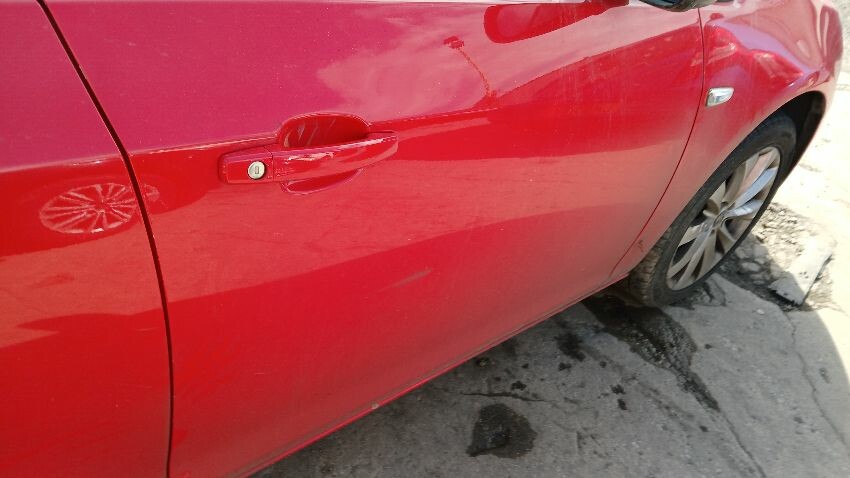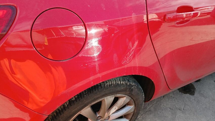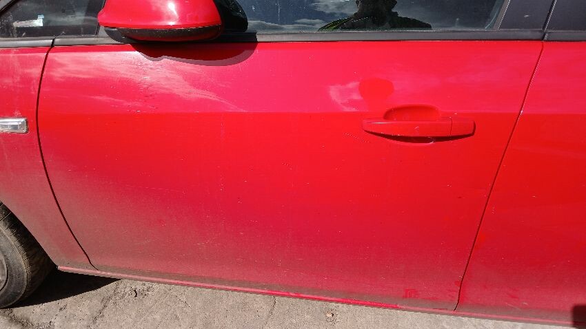 Front bumper, n/s front wing, n/s front door, n/s wing mirror, n/s rear quarter, rear bumper, o/s rear quarter, o/s front door, scuffs and scratches all over, general wear and tear for age