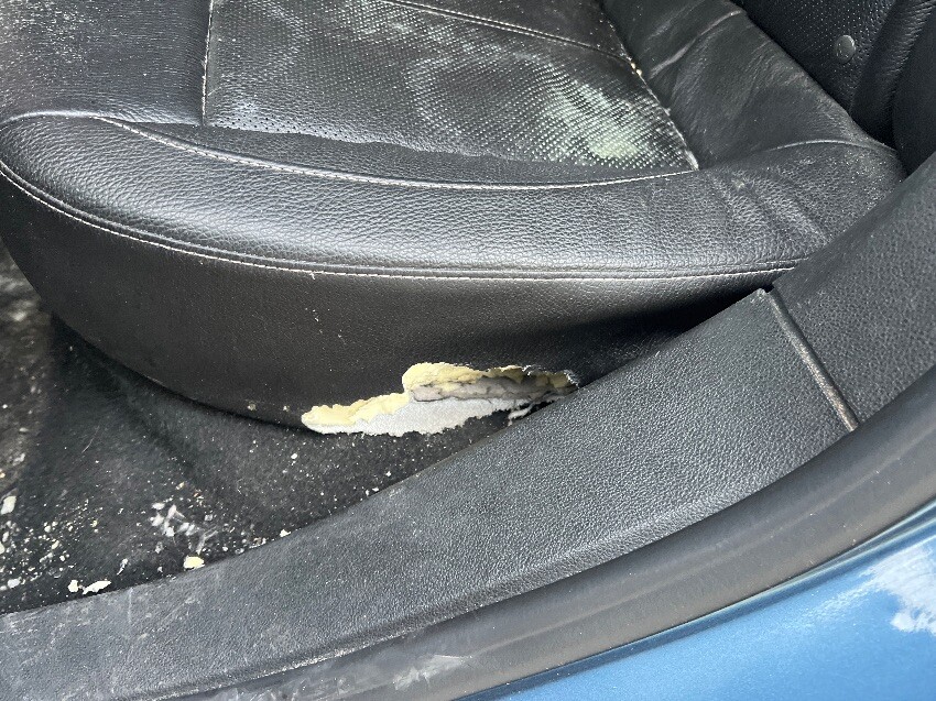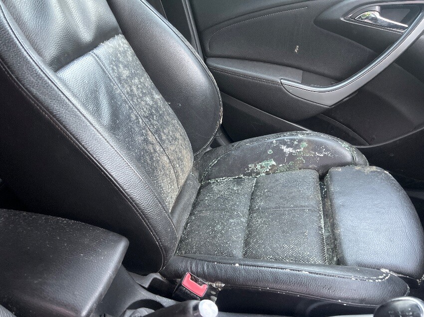 Full of mould, rear bumper, rear seat, offside mirror, offside front wheel arch, front bumper, nearside mirror, bonnet, offside side rear wheel arch, general wear and tear.