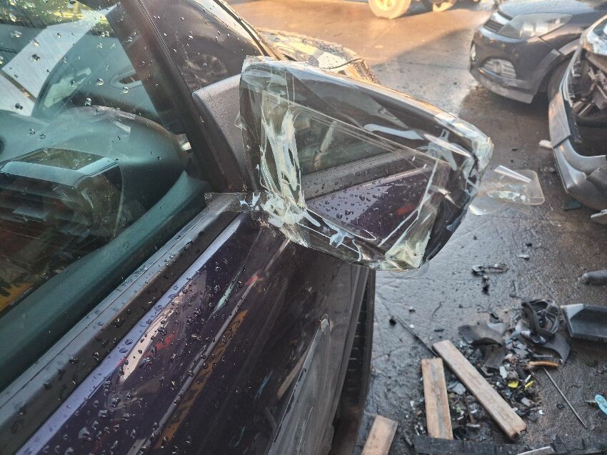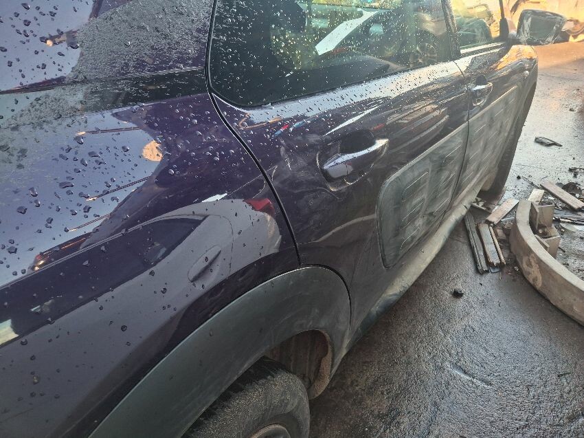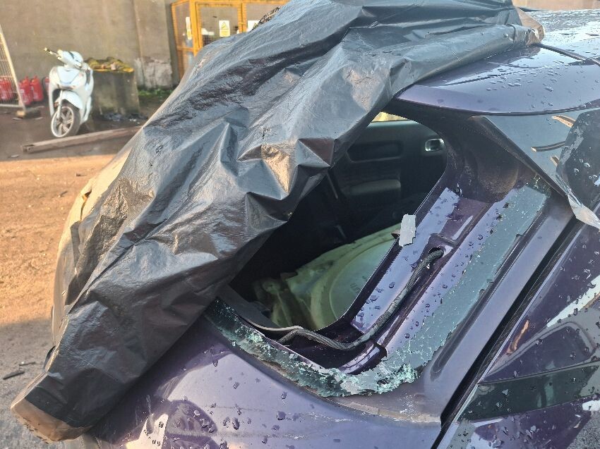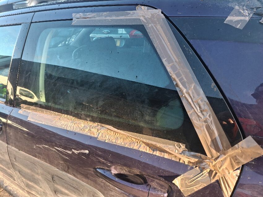All round damage, particularly rear end, rear screen missing, paintwork shabby, engine management light on. general wear and tear