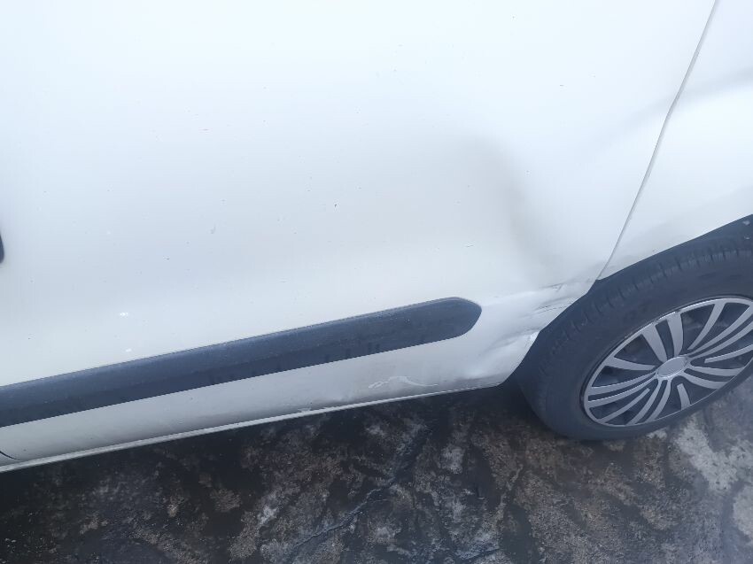 Engine sounds lumpy, dent on back passenger side door, damage on rear, passenger sliding side door dented, general wear and tear
