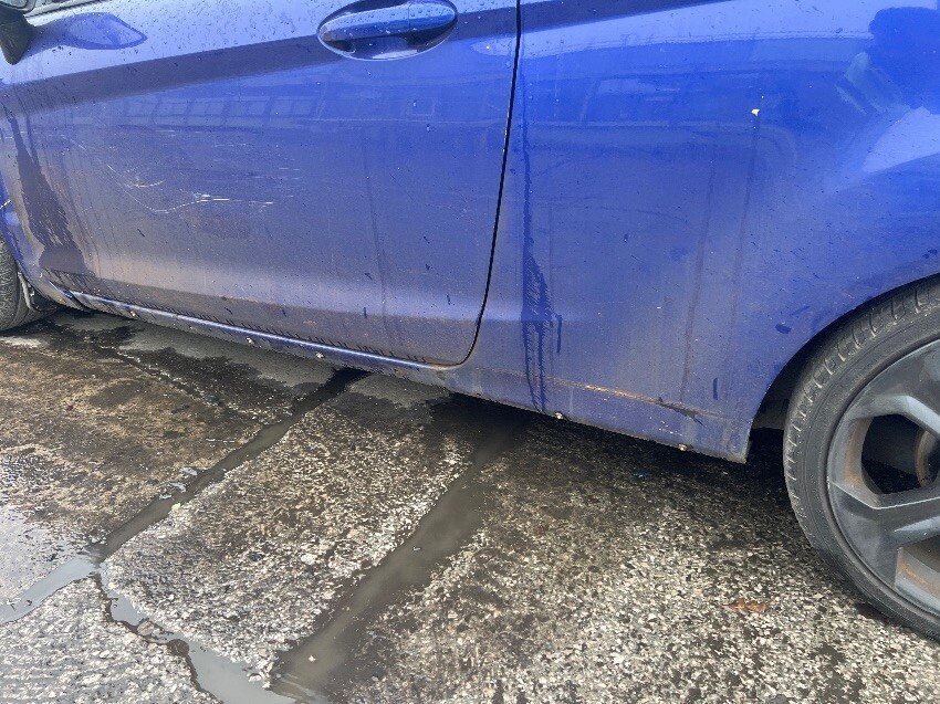 Rear bumper, nearside sill, nearside rear wheel arch, nearside front passenger door, nearside front wing, front bumper, offside front wing, general wear and tear.