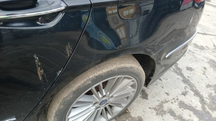 Front bumper, bonnet, ns front wing, ns rear door, rear bumper, os rear quarter, os rear door, os front door, os wing mirror, scuffs and scratches all over, general wear and tear for age, some rust spots