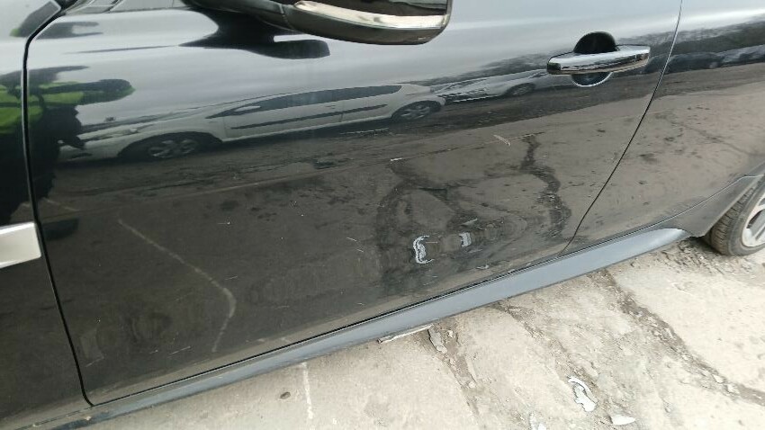 Front bumper, n/s rear quarter, o/s rear quarter, o/s front wing, scuffs and scratches all over, general wear and tear for age and mileage, poor respray