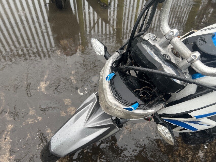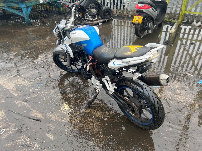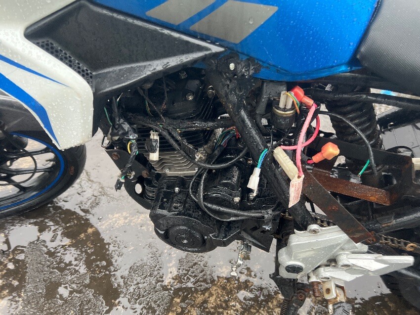 Wiring, general wear and tear, battery missing, front wind deflectors, plastics.
