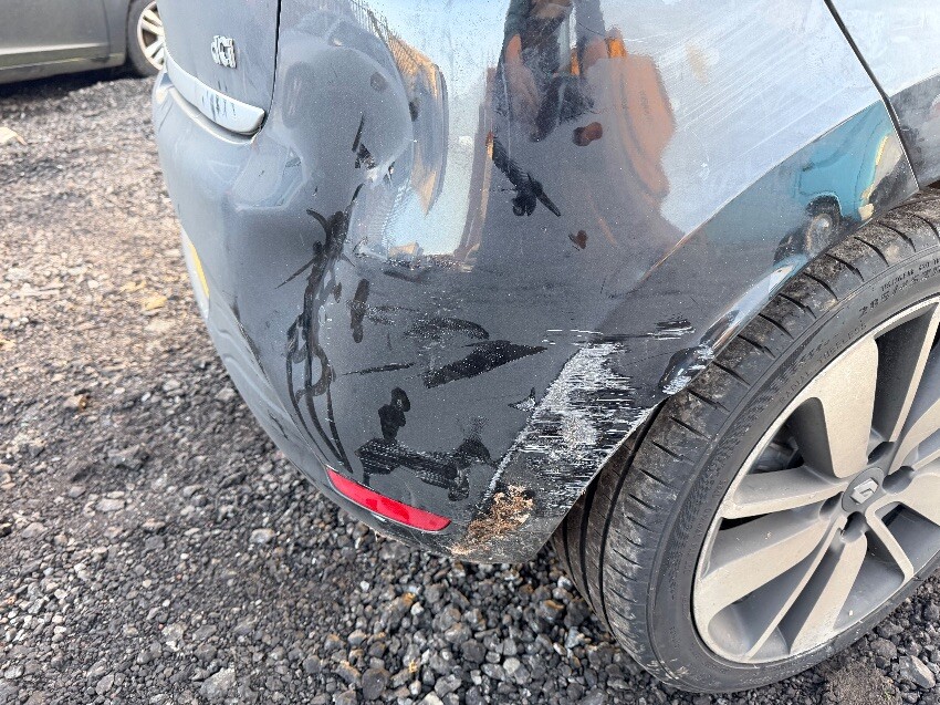 O/s front bumper scuffed, light scuffs on n/s. front passenger door not aligned at bottom. scrape and dent on n/s rear quarter. scrape on rear bumper n/s. large dent and scrape o/s rear bumper. other general wear and tear.
