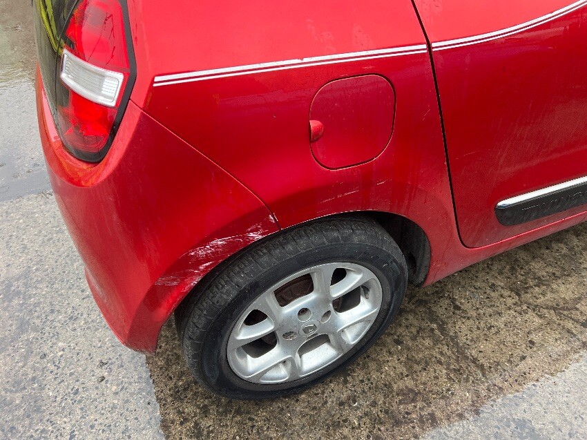Bonnet doesn’t open, front bumper, low on fuel, offside rear wheel arch, rear bumper, nearside rear wheel arch, general wear and tear.