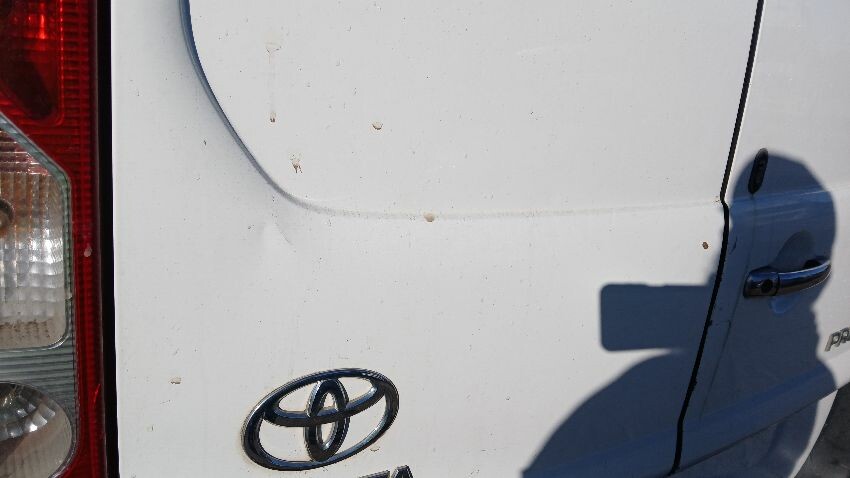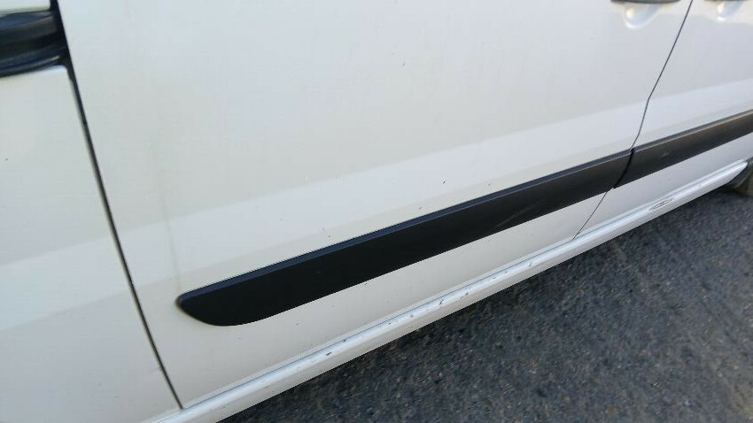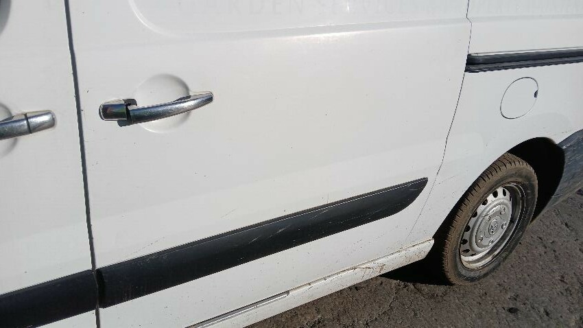 Front bumper, bonnet, n/s front wing, n/s wing mirror n/s sill, n/s sliding door, n/s rear quarter, rear bumper, both rear doors, o/s rear quarter, o/s sill, o/s front wing, scuffs and scratches all over, general wear and tear for age and mileage, interior soiled
