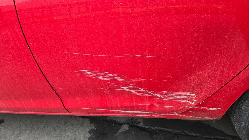 Front bumper damaged, o/s/f wing damaged, bonnet has stone chips and scratches, n/s/f wing scratched, ms wing mirror scratched, rear bumper damaged, n/s/r panel damaged, nsr door damaged, washer fluid tank cap missing, general wear and tear,