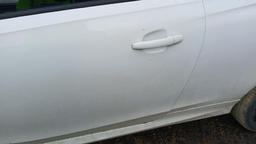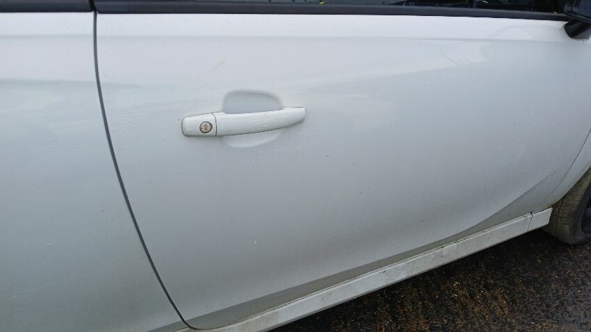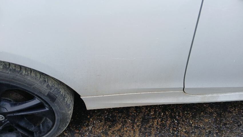 Front bumper, bonnet, n/s wing mirror, n/s door, n/s rear quarter, rear bumper, o/s rear quarter, o/s door, o/s front wing, scuffs and scratches all over, general wear and tear for age