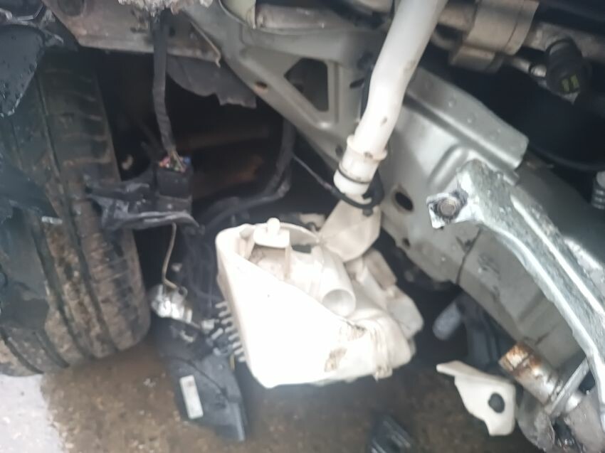 Deadlocked, wet interior, drivers airbags deployed, front bumper damaged, drivers headlight missing, drivers front wing damaged, washer fluid bottle squashed, crash bar damaged, windscreen smashed, general wear and tear