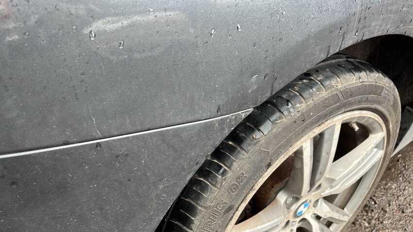 Slight scuff front right bumper, slight dent rear left hand side arch