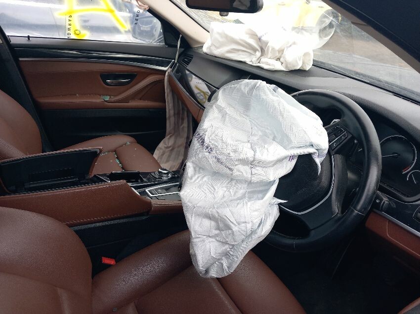 Front bumper, bonnet, n/s wing, o/s wing smashed window, airbags deployed, broken glass inside interior spilled, age and mileage related wear and tear