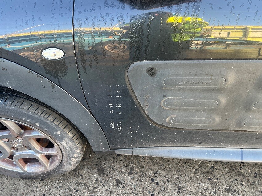 Front bumper, offside wing mirror, offside rear wheel arch, rear bumper, rear light, boot, nearside wing mirror, nearside front passneger door, general wear and tear.