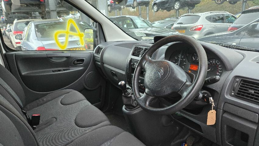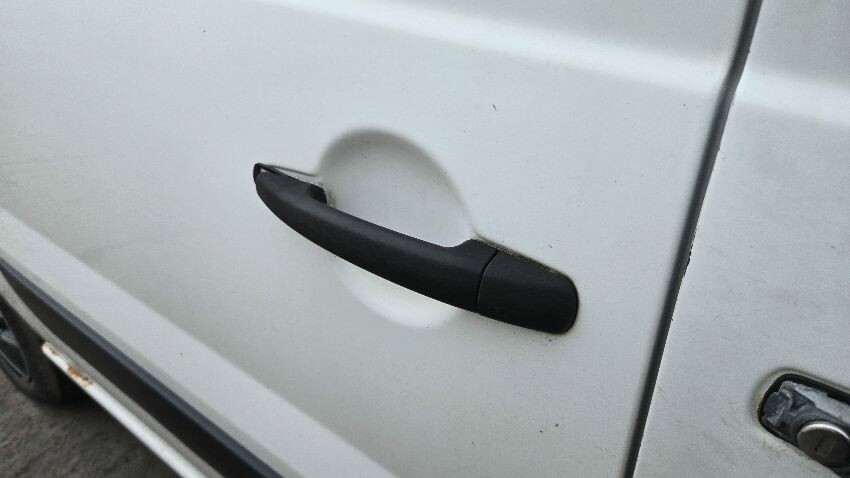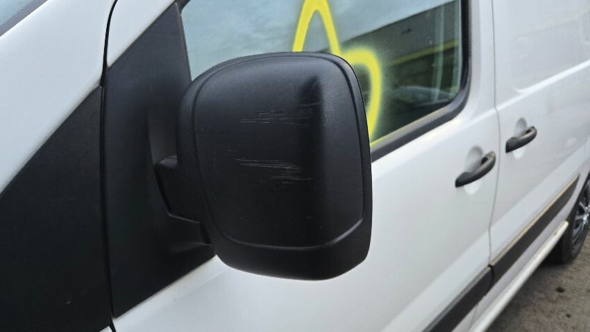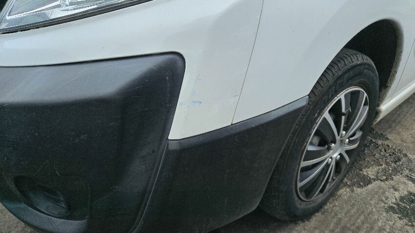 Rear bumper damaged, rear door has paint chips, ns wing mirror scratched, front bumper damaged, os sliding door dented, os sliding door handle damaged, os sill rusting, general wear and tear,