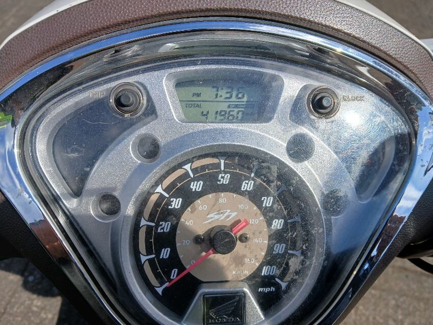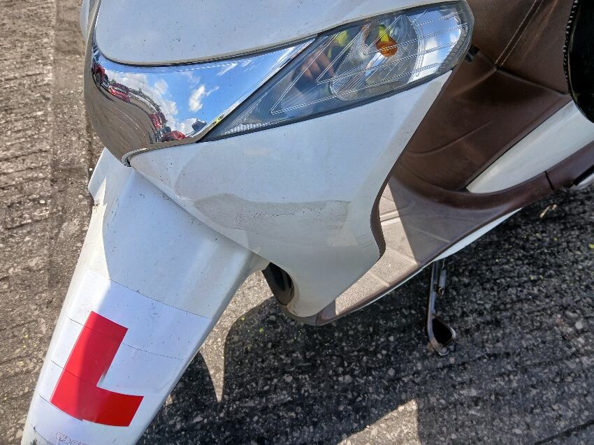 Engine warning sign flashing, struggles to stay running, plastics all round have damage, stiff to push, front unit, front mudguard, general wear and tear and scratches.