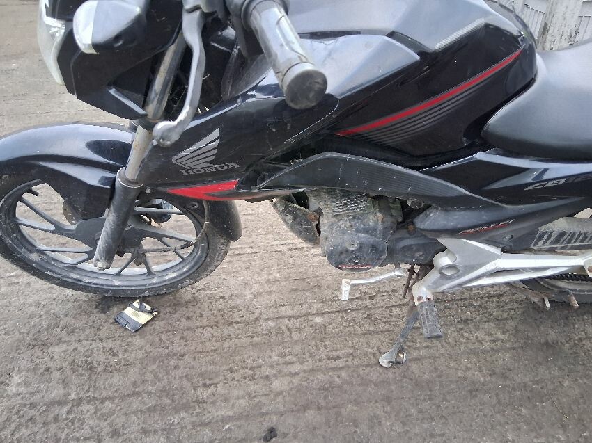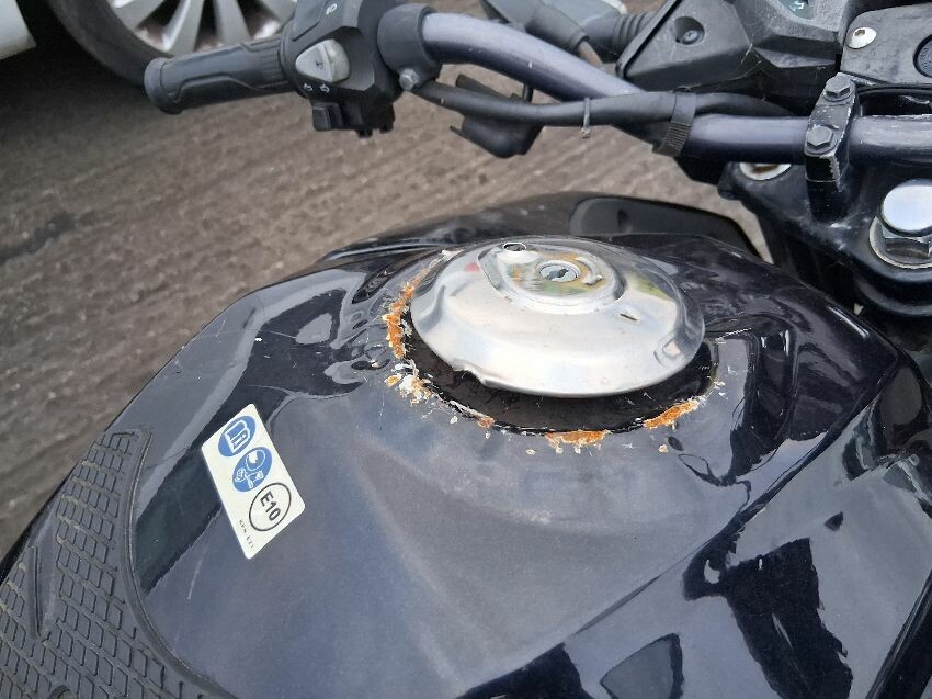 Plastics all round have damage, fuel tank tampered, wiring cut, clocks smashed, front unit, n/s mirror missing, general wear and tear and scratches.