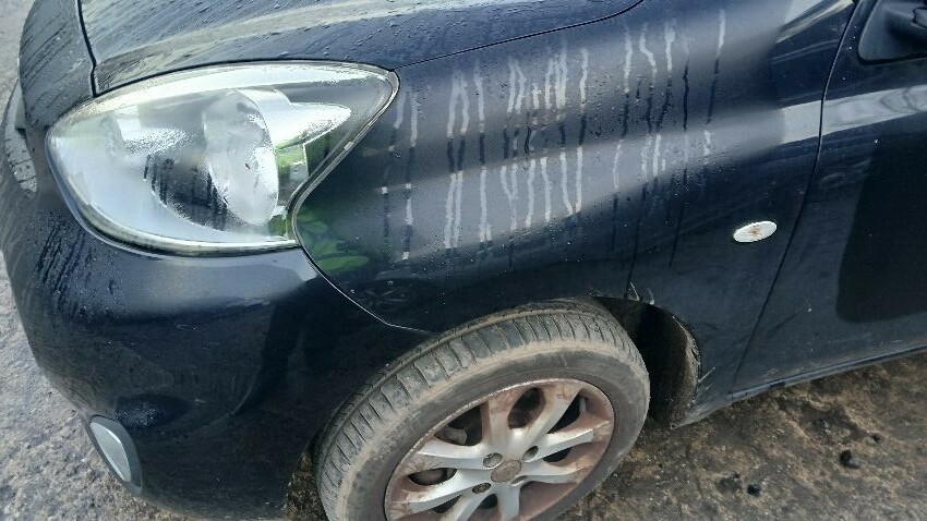 Front bumper, ns wing mirror ns rear door, ns rear quarter, rear bumper, boot lid, os rear quarter, os rear door, os front wing, scuffs and scratches all over, general wear and tear for age and mileage, interior soiled and mouldy