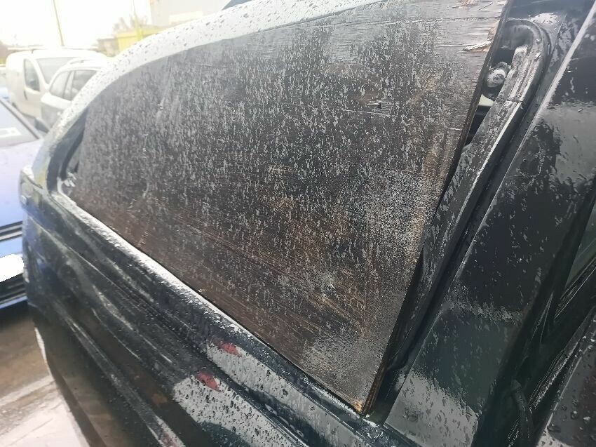 White smoke coming from exhaust, brake fault light is on, interior has damp odor, pickup hardtop rear window is broken, passenger side tail light is broken, passenger rear tyre is flat, drivers rear tyre is flat, general wear & tear.
