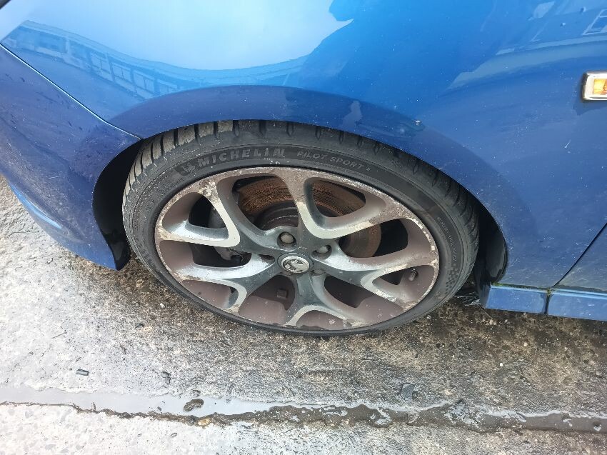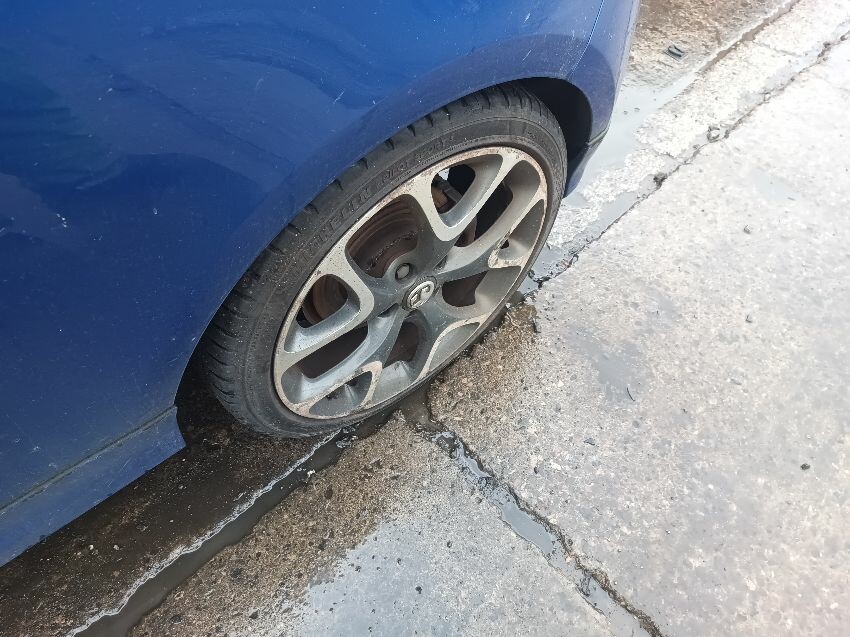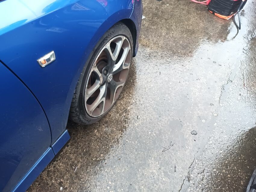 Engine knocking, brake fault light is on, moldy interior, exhaust smoking, wheels are scuffed, bonnet edge is rusty, front bumper loose, rear bumper is scratched, general wear & tear.