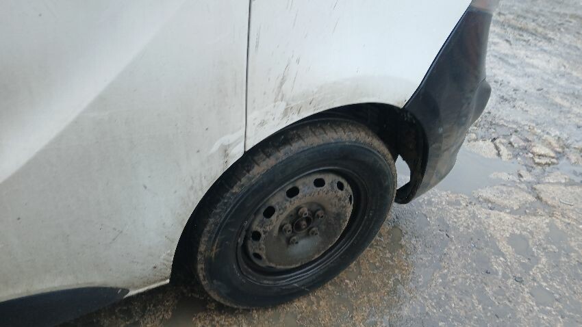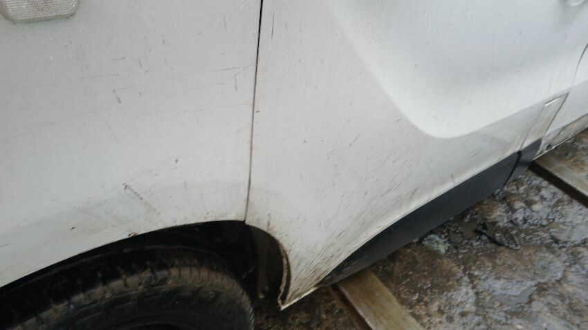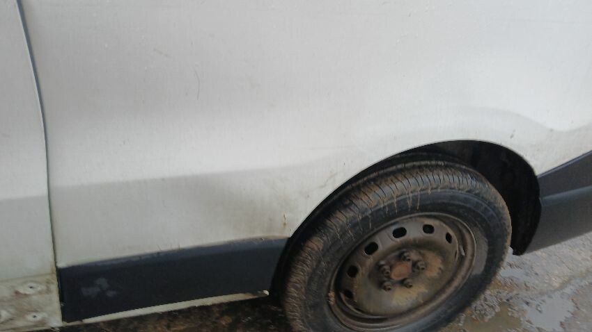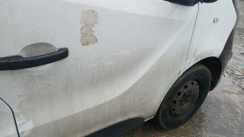 Front bumper, bonnet, n/s front wing, n/s front door, n/s sliding doors, n/s rear quarter, rear bumper, both rear doors, o/s rear quarter, o/s door, o/s front wing, scuffs and scratches all over, general wear and tear for age and mileage, interior soiled and damaged, engine management light on, runs rough, engine knocking, handbrake faulty