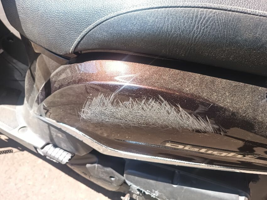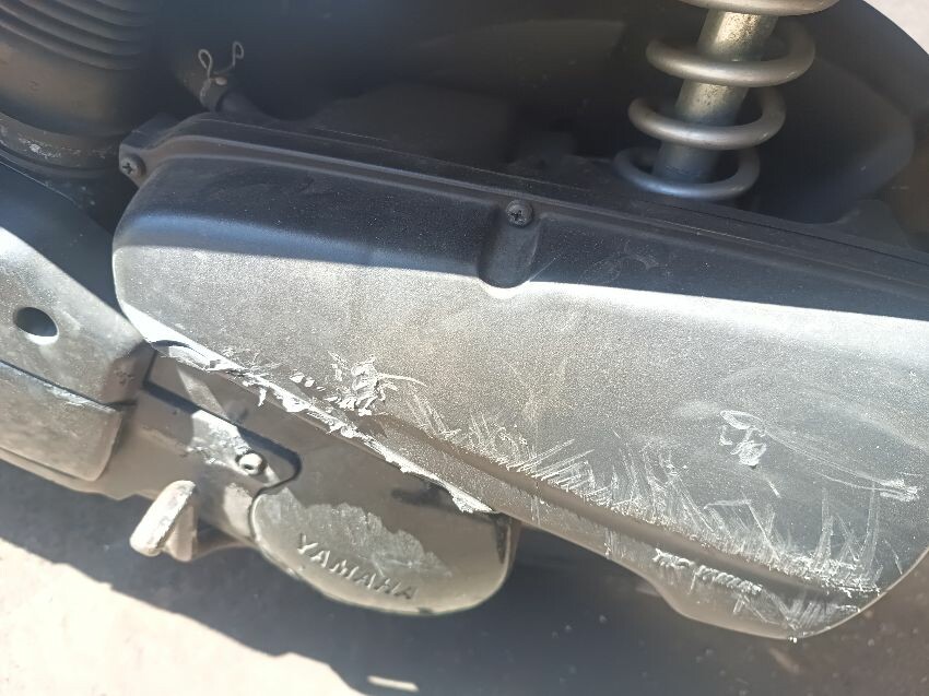 License plate is broken, front fender is scratched, front plastics are damaged, airbox scuffed, seat plastics are scuffed, plastic belly pan is loose & damaged, exhaust scuffed, left & right mirror is missing, right mirror attachment point is damaged, left bar end scuffed, vin cover missing, duck boards are damaged, left front indicator is broken & loose, left brake lever is bent general wear & tear.