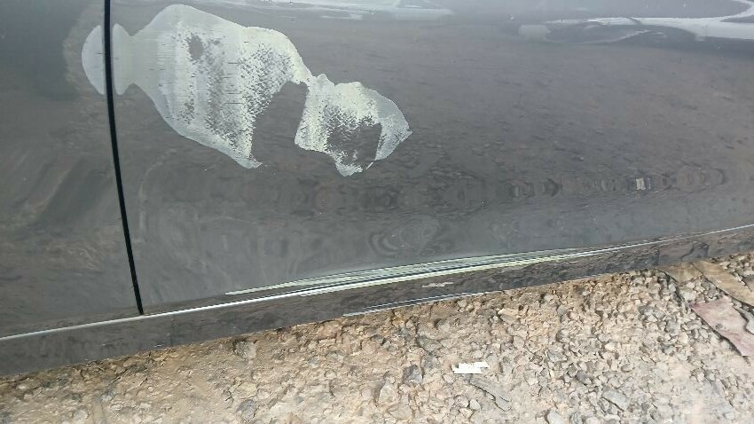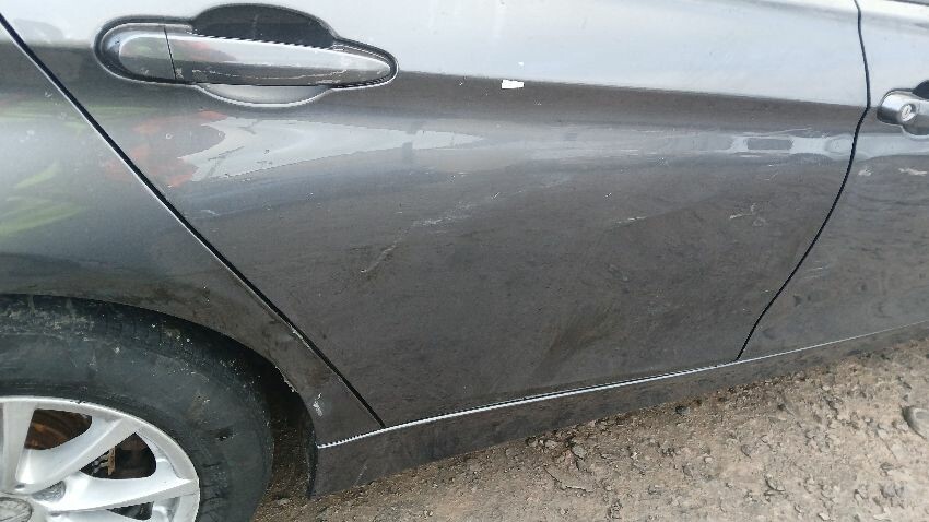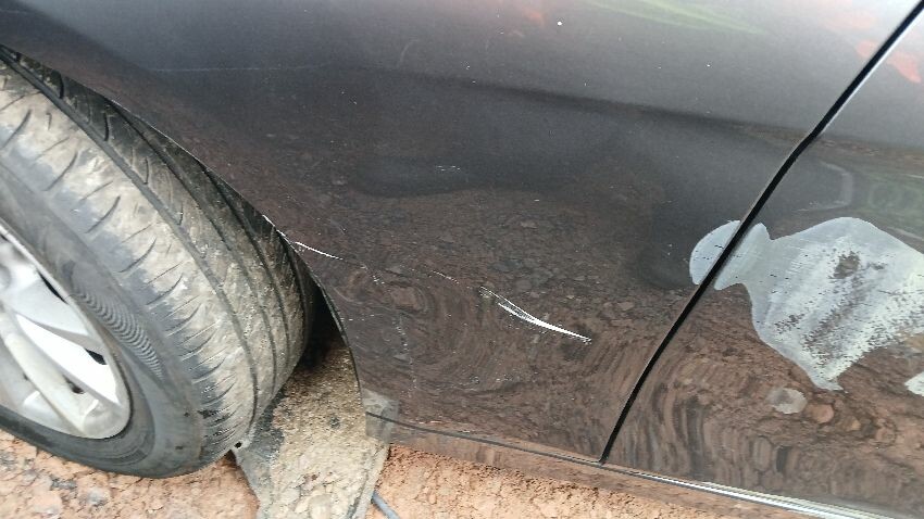 Front bumper, n/s front wing, n/s front door, n/s side skirt, n/s rear quarter, rear bumper, o/s rear quarter, o/s rear door, o/s front door, o/s side skirt, scuffs and scratches all over, general wear and tear for age