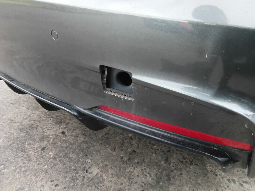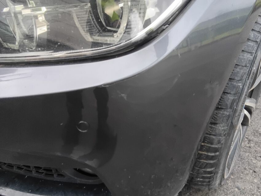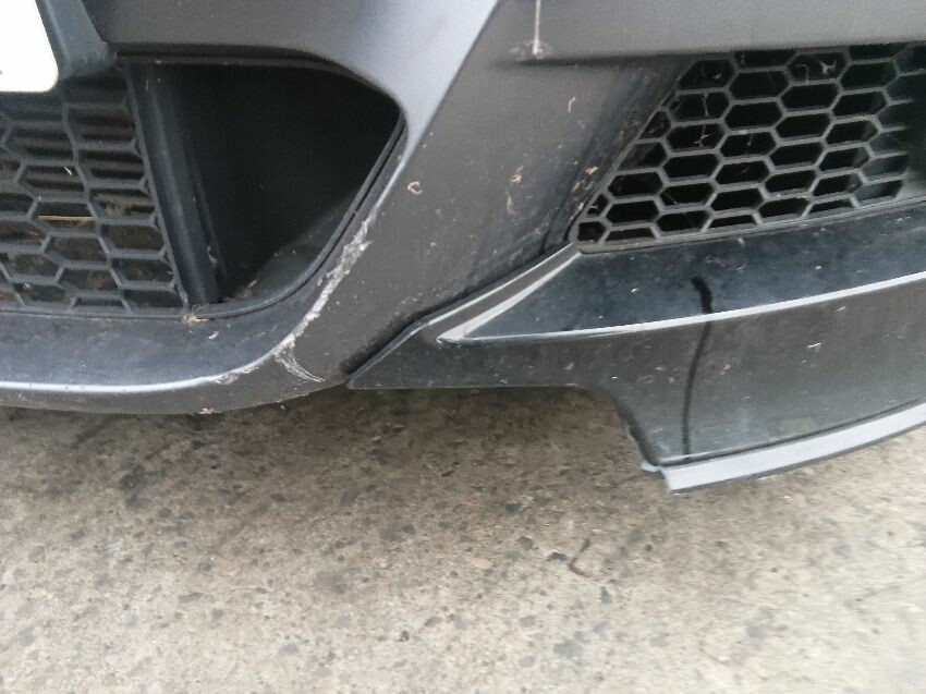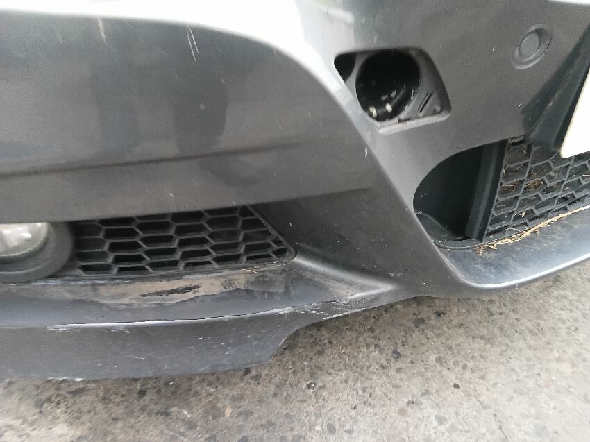 Front bumper damaged, front and rear bumper missing tow hook cover,