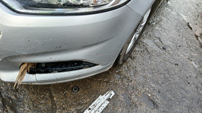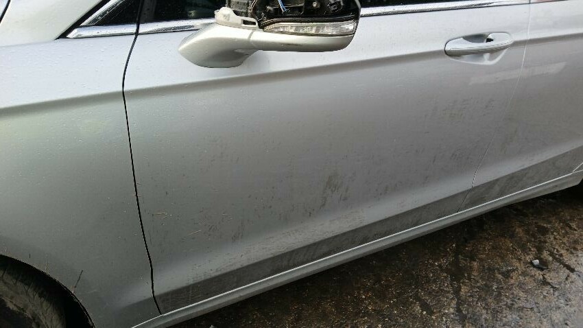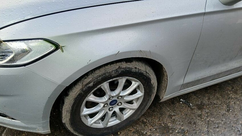 Front bumper, bonnet, bonnet jammed, front grill, n/s front wing, n/s wing mirror, n/s rear quarter, rear bumper, o/s complete, scuffs and scratches all over, general wear and tear for age and mileage, interior soiled