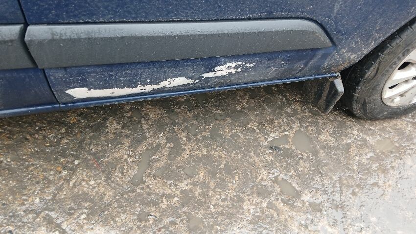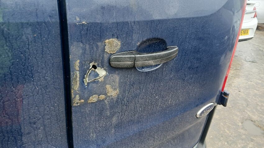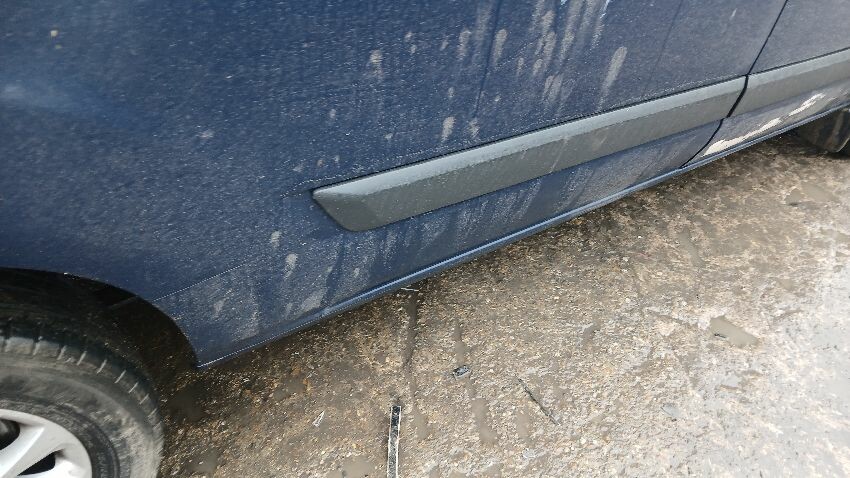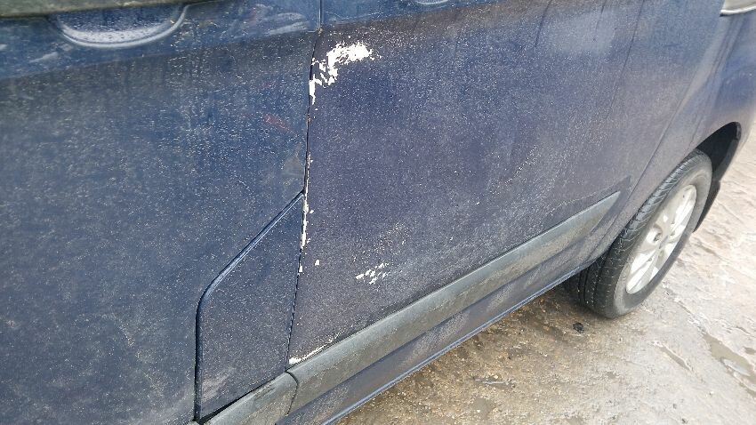 Front bumper, bonnet lock broken, n/s door, ns sliding door, n/s rear quarter, rear bumper, both rear doors, rear door lock missing, o/s rear quarter, o/s body panel, o/s door, scuffs and scratches all over, general wear and tear for age and mileage, engine knocking, runs rough