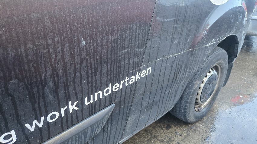 Interior in poor condition, front bumper damaged, nsf wing damaged, osr wheel arch damaged, rear doors damaged, nsr panel damaged, osr wheel arch damaged, os sliding door scratched, missing fuel cover door, bonnet needs key to be opened, general wear and tear,