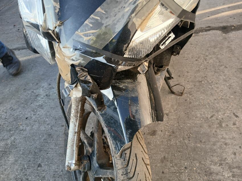 Front fairings, n/s and o/s fairings, mudguard, handlebars, brake levers, mirrors n/s and o/s, ignition barrel stripped, wiring damage. stand, exhaust and ither components rusted. scuffs and scratches all over. vehicle has age and mileage related wear and tear.
