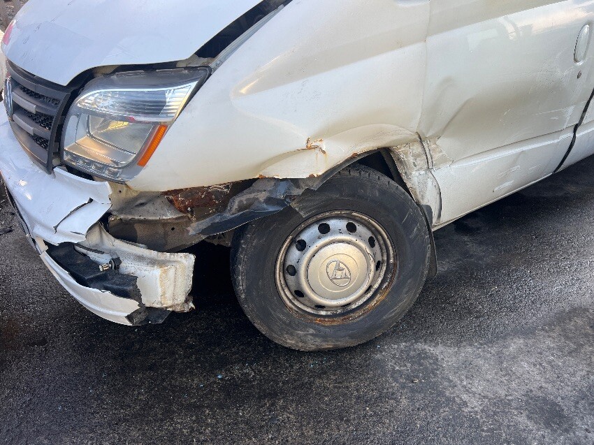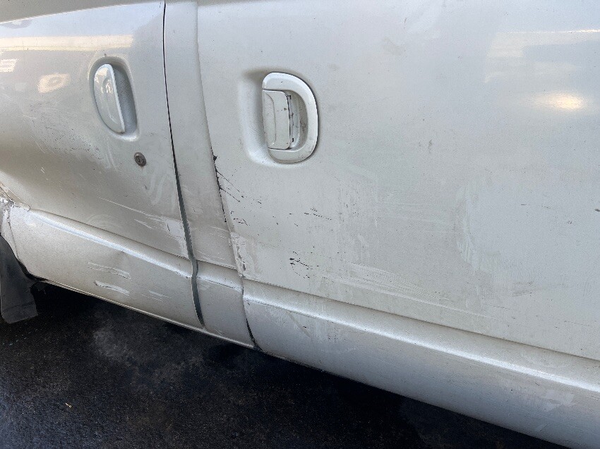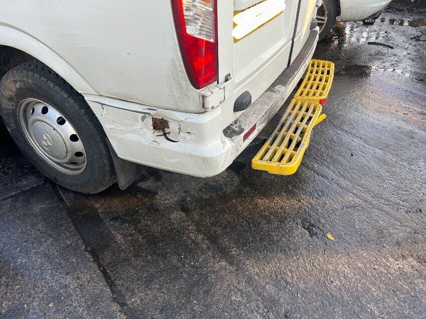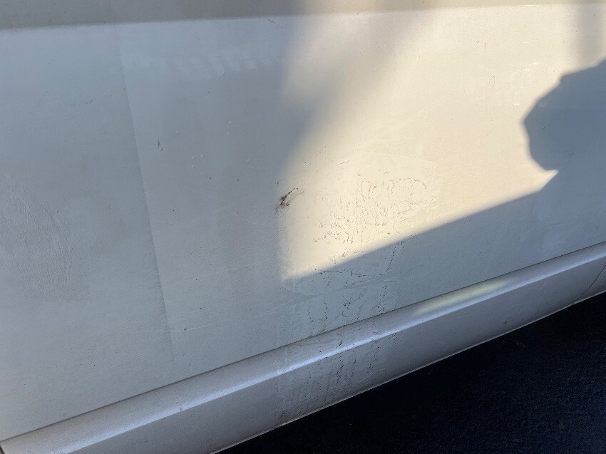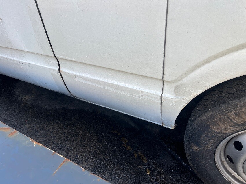 Full of rubbish, rear bumper, rear step, nearside sill, nearside rear wheel arch, nearside side door, nearside front passenger door, nearside front wheel, nearside front wing, front bumper, bonnet doesn’t open, offside front wing, offside sill, mould inside, offside side panel, general wear and tear.