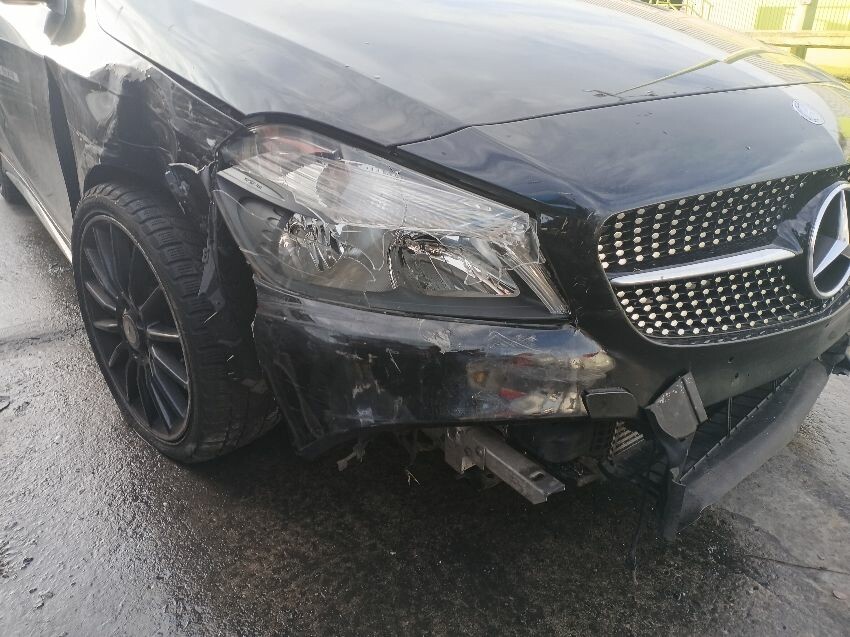 Front bumper, osf qtr panel, deadlocked, os headlight, general wear and tear