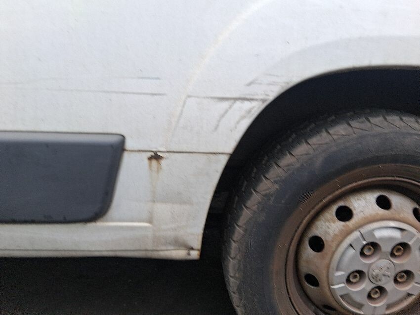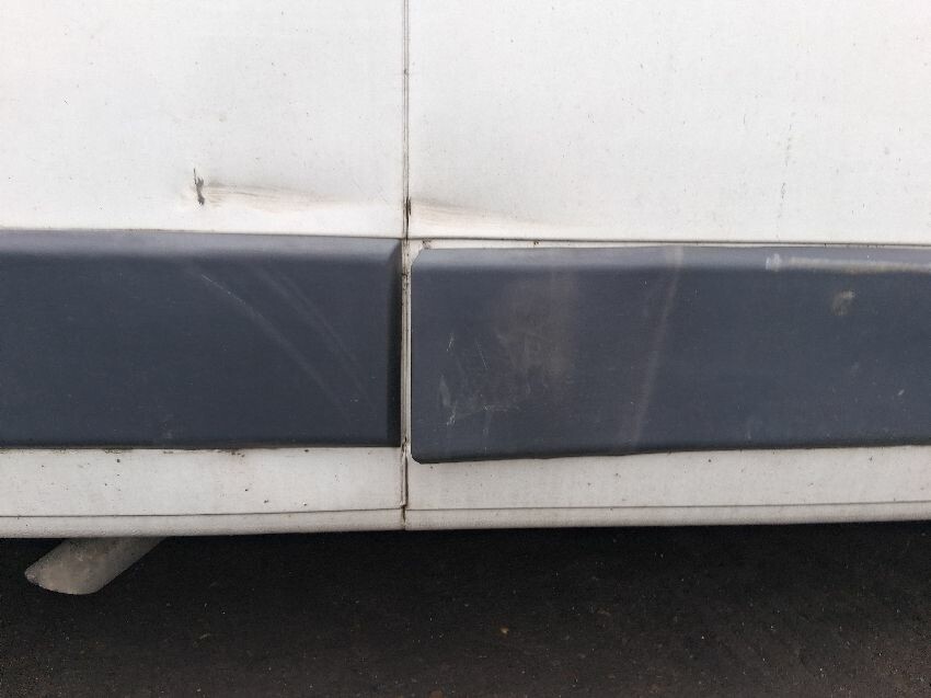 Out of fuel, possibly tank has burst, rear bumper, rear doors, o/s side panel, o/s door, o/s mirror, o/s wing, front bumper, windscreen, n/s wing, n/s sill, n/s sliding door, n/s quarter, general wear and tear and scratches.