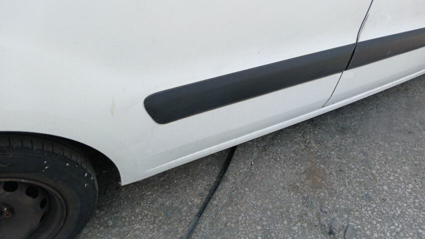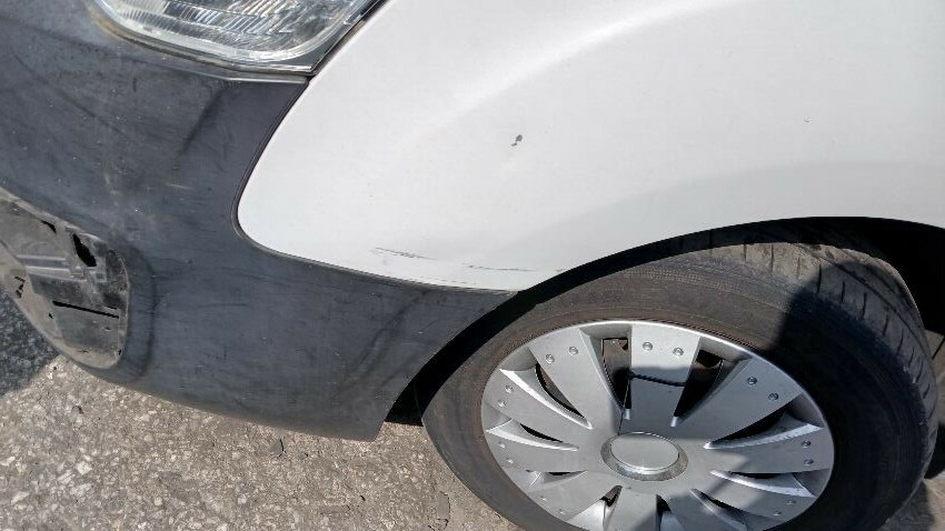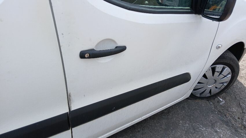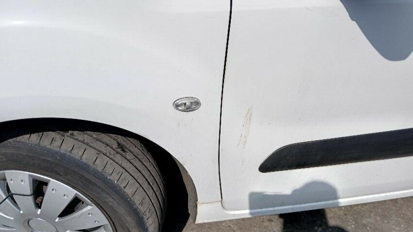 Front bumper, bonnet, n/s front wing, n/s wing mirror, n/s front door, n/s sliding door, n/s rear quarter, both rear doors, n/s rear door not on hinges, rear bumper, o/s rear quarter, o/s door, o/s front wing, scuffs and scratches all over, general wear and tear for age and mileage, multiple warning lights on dash
