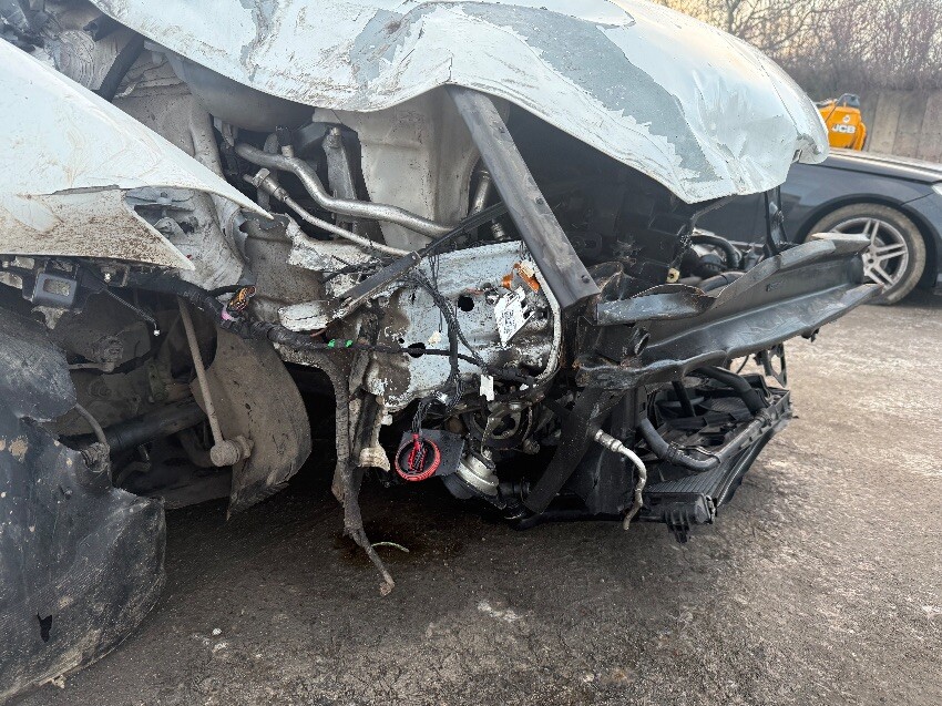 Rear bumper, o/s rear door quarter quarter panel, o/s rear door, o/s wing, air bags deployed, o/s front wheel, bonnet, windscreen, o/s front light missing, n/s front light missing, front bumper missing, grill missing, crash bar, radiator, bonnet catch, n/s wing, n/s front door, n/s mirror, n/s rear door, n/s rear wheel arch, general wear and tear.