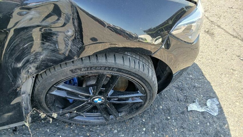 Front bumper, bonnet, n/s front wing, n/s wing mirror n/s rear quarter, rear bumper, o/s complete, scuffs and scratches all over, general wear and tear for age, possible suspension and steering assembly damage to both sides at front