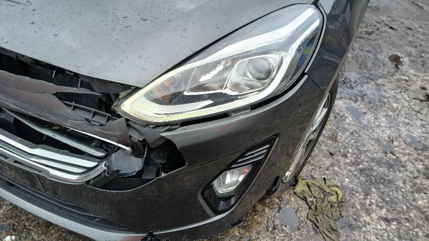 Front bumper, both front headlight units , n/s front wing, n/s wing mirror, n/s sill, n/s rear door, rear bumper, o/s complete, scuffs and scratches all over, airbags deployed, age and mileage related wear and tear